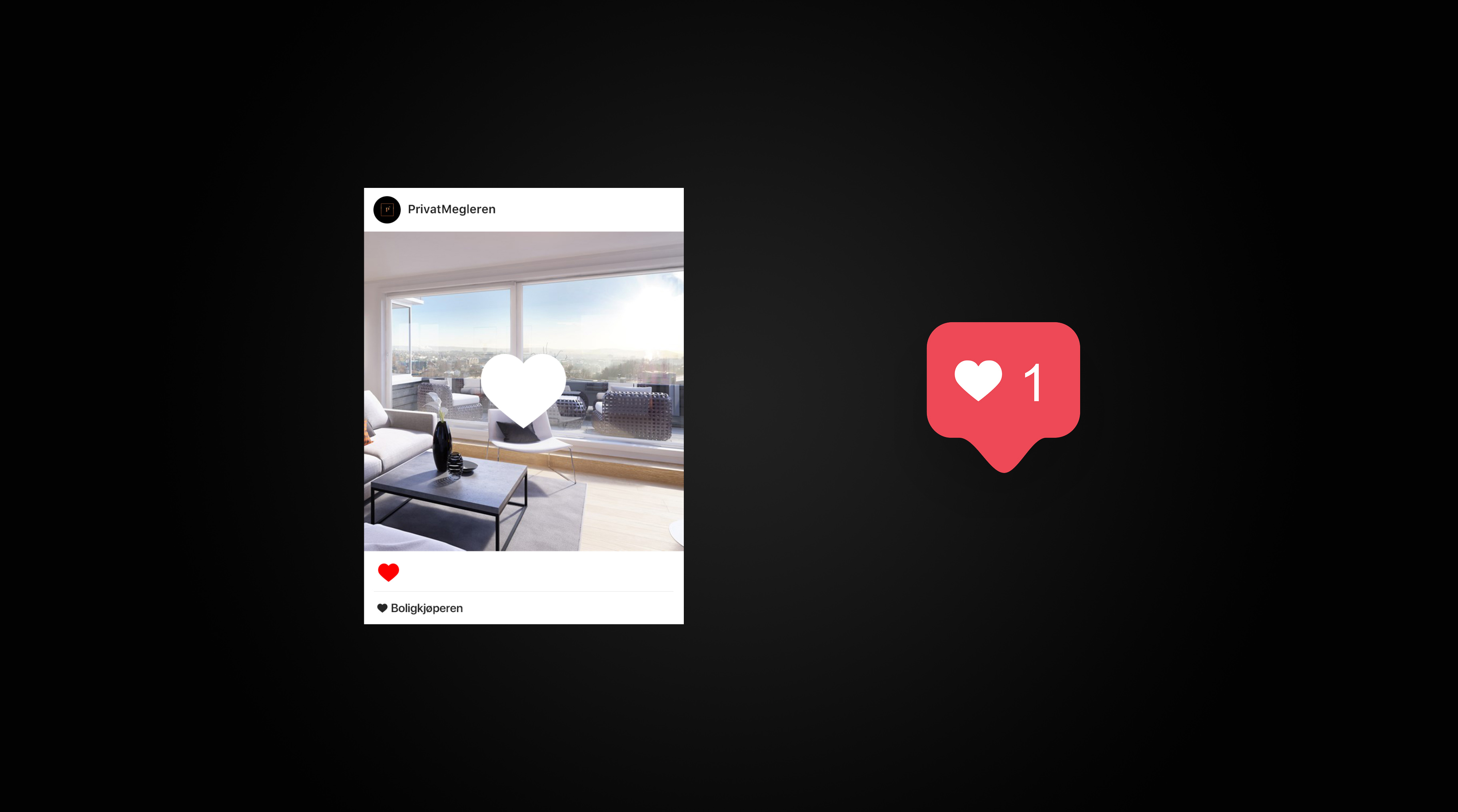 For å skape maksimal effekt, ønsket vi å knytte et ytterligere element til “KLiKK”. Et element som er gjenkjennelig og som går igjen hos boligkjøperne. Med Valentines day like rundt hjørnet, kom vi frem til ordet “kjærlighet”. Med “Kjærlighet ved første “KLiKK”-setningen la vi grunnlaget for annonsen. Noe som kunne brukes i kjærlighetsmåneden februar, men som også kunne videreføres. Boligkjøpernes “likes” er nøkkelen til denne tjenesten. “Likes” assosieres med hjerter, og igjen kjærlighet. Noe som gjorde annonsen tidløs og evigvarende.